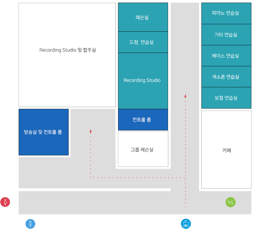피아노, 기타 베이스, 드럼 마이크 등 기본적인 장비들은 개인 악기 소지 없이 학원 내에서 자유롭게 사용하실 수 있습니다. 사용하신 후에는 항상 제자리에 반납하시면 감사하겠습니다.